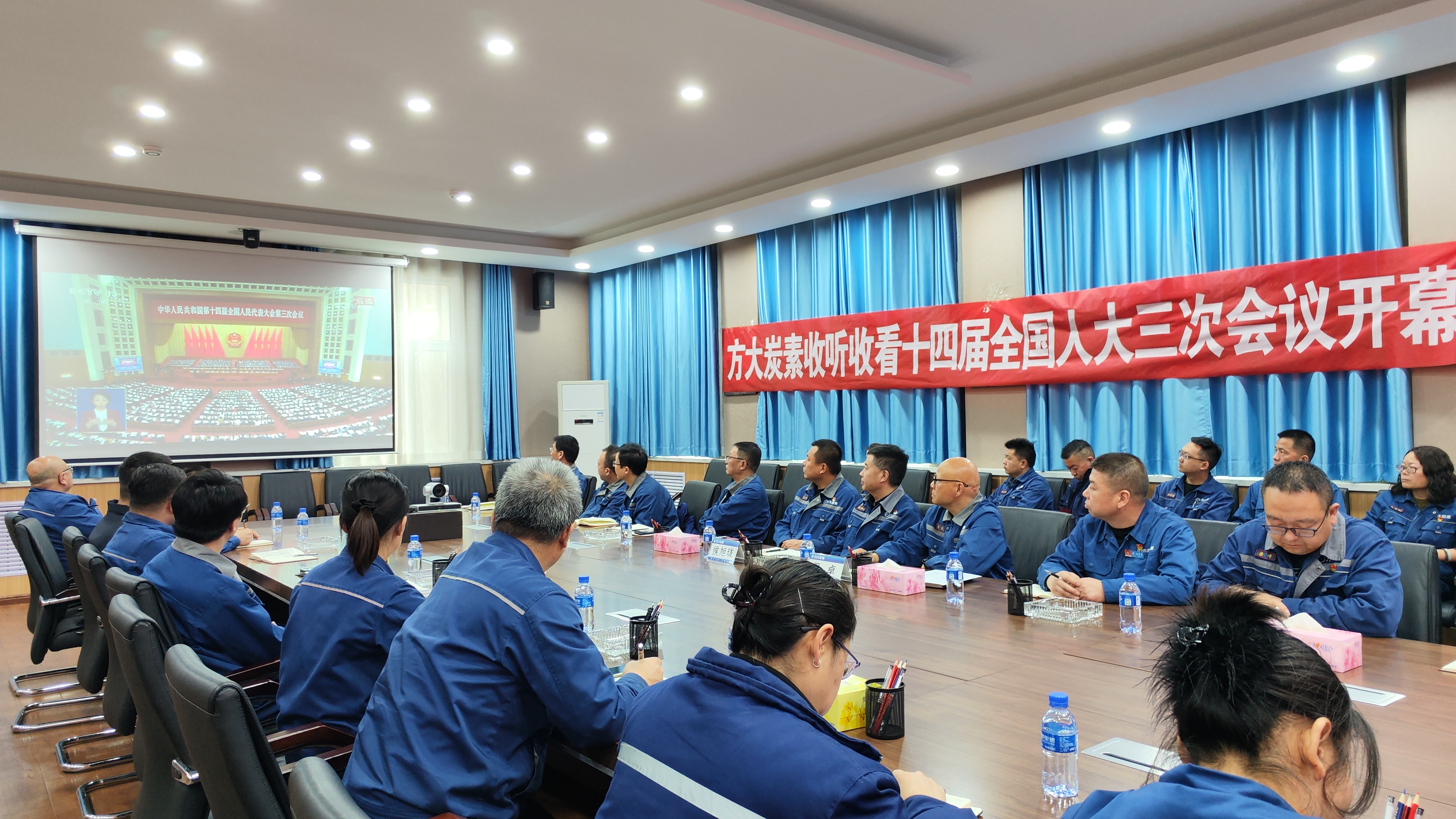 方大炭素干部員工集中收聽收看全國兩會開幕盛況